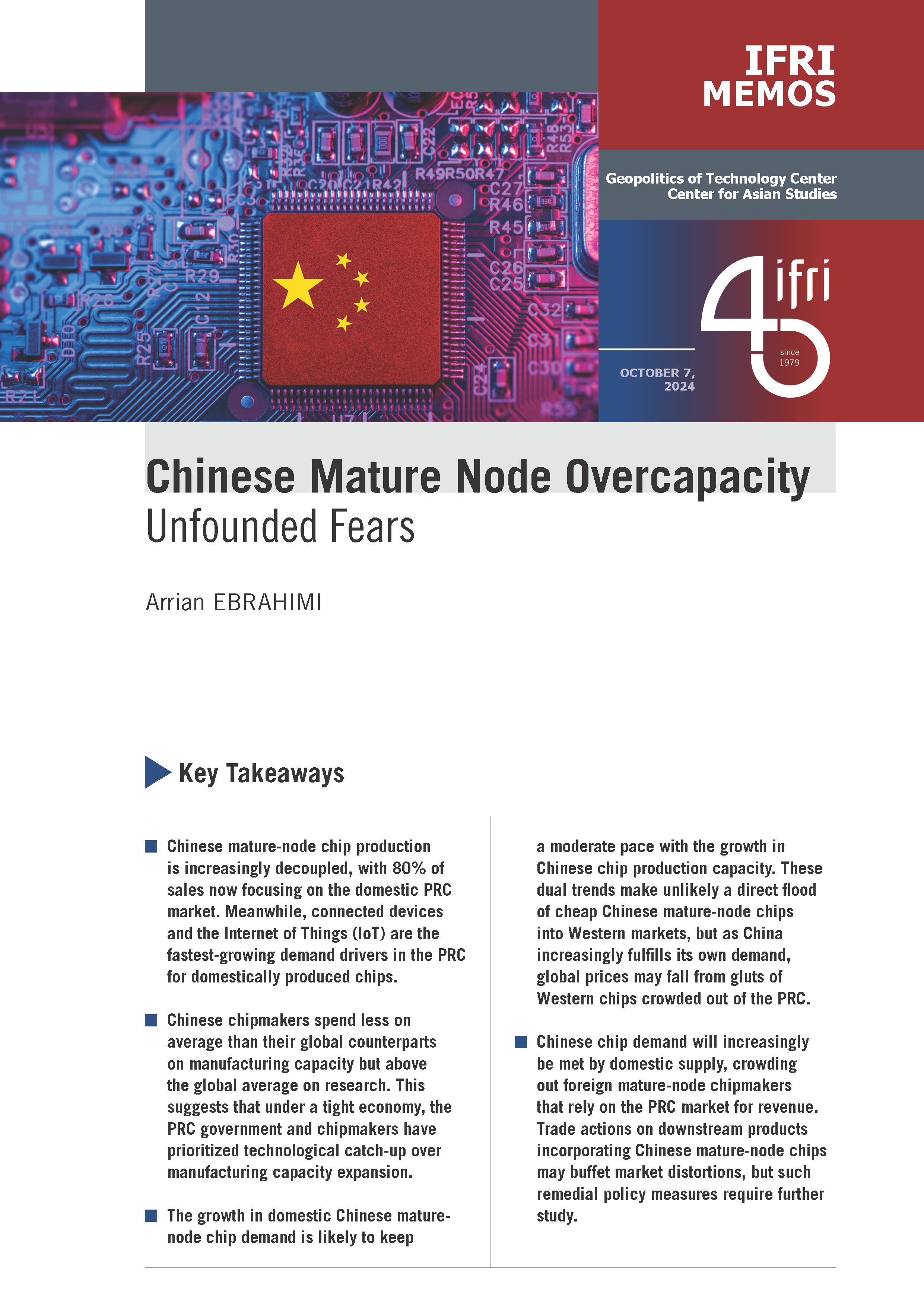 - Chinese chip demand will increasingly be met by domestic supply, crowding out foreign mature-node chipmakers that rely on the PRC market for revenue. Trade actions on downstream products incorporating Chinese mature-node chips may buffet market distortions, but such remedial policy measures require further study.