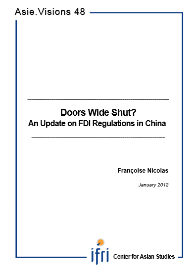 The recently promulgated changes to the catalogue on foreign investment guidance point to further opening, in particular with fewer restricted categories. However, this positive change is counterbalanced by the persistence of ownership restrictions in particular. Similarly, although the Chinese government has backtracked on its decision to connect indigenous innovation policy and government procurement, the Chinese public procurement market is still heavily restricted for foreign investors. Lastly, the implementation of the merger review under the anti-monopoly law suggests that foreign firms are to some extent being discriminated against even if the recently enacted NSR procedure should not bring major changes to the existing regulatory setting.