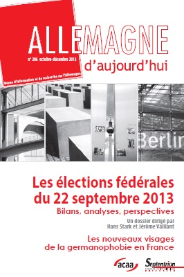Un dossier dirigé par Hans Stark et Jérôme Vaillant, avec des contributions de H. Brodersen, C. Caro, H. Stark, B. Lestrade, A. Salles sur le bilan du mandat 2009-2013 de la coalition chrétienne-libérale dirigée par A. Merkel, des contributions de J.-L. Georget, H. Miard-Delacroix, M. Weinachter, A. Lattard, D. Herbet, R. Hargasser, F. Danckaert et G. Sebaux sur la situation des partis politiques en particulier et la campagne électorale en général ainsi qu'une analyse des résultats et des perspectives à l'issue du scrutin par C. Demesmay et D. Heimerl, H. Ménudier et J. Vaillant et une mise en perspective francoallemande par D. Herbet…