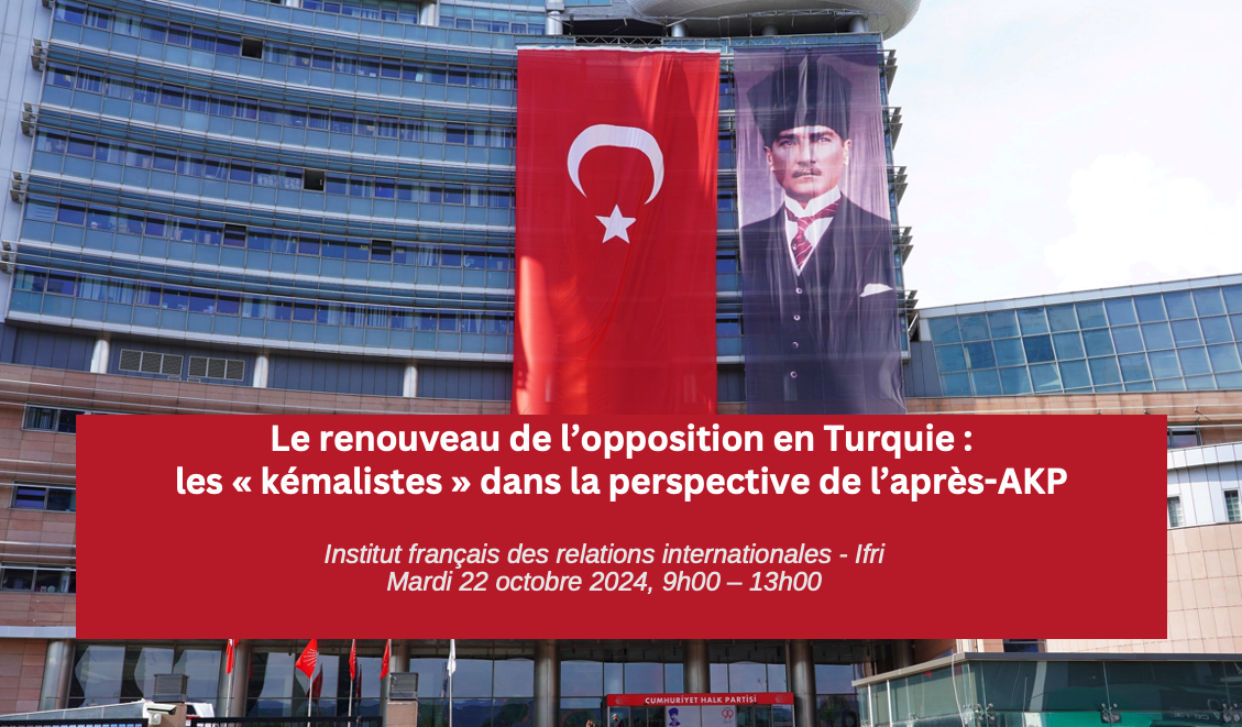 Replay de la conférence "Le renouveau de l’opposition en Turquie les « kémalistes » dans la perspective de l’après AKP" à l'Ifri, le 22 octobre 2024, organisée par le Programme Turquie/Moyen-Orient.